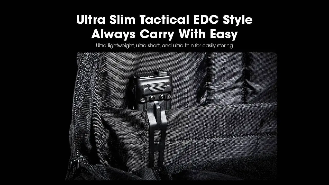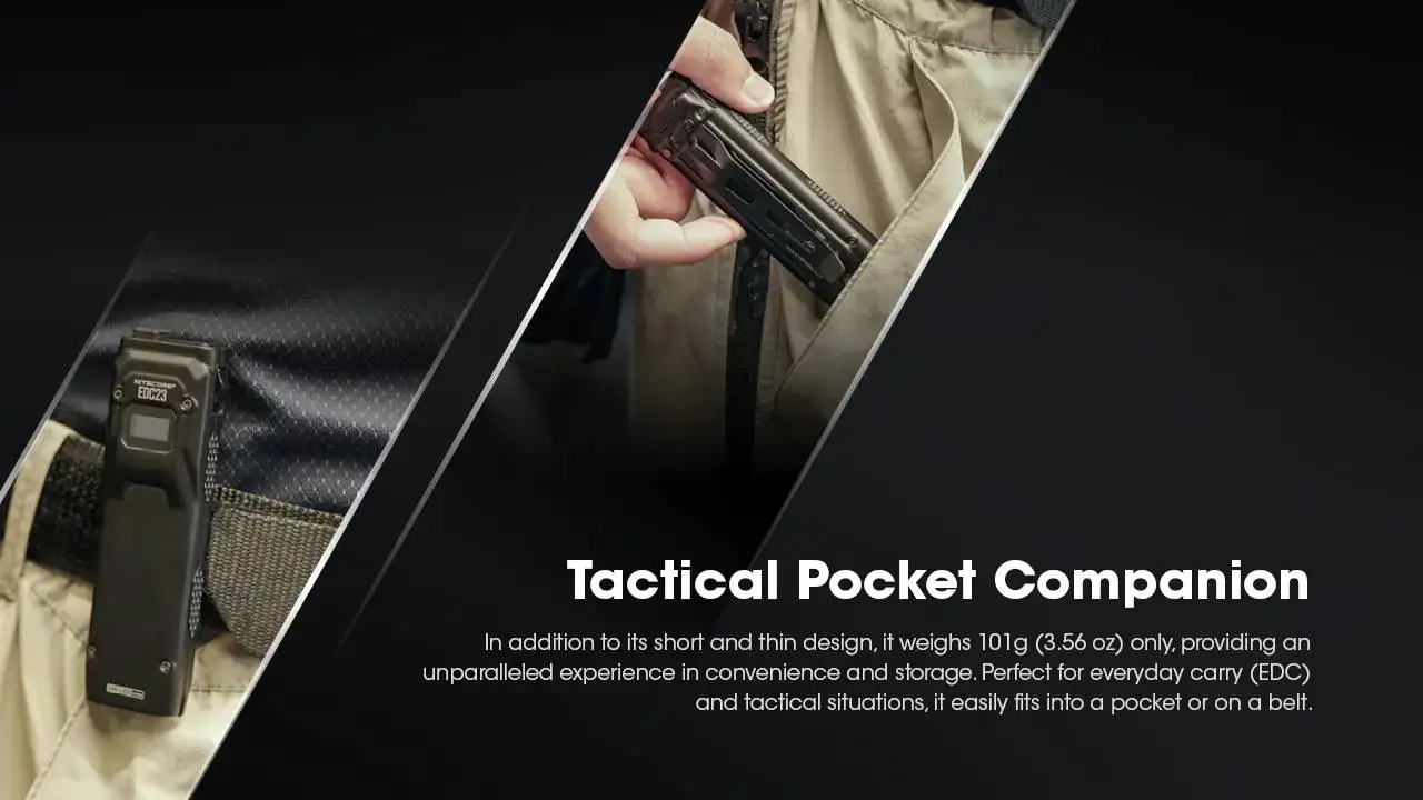 פנס יד טקטי קומפקטי מדגם EDC23 מבית Nitecore, המשלב עוצמה של 2500 לומן עם עיצוב דק, קצר וקל במיוחד לנשיאה יומיומית ושימוש טקטי.