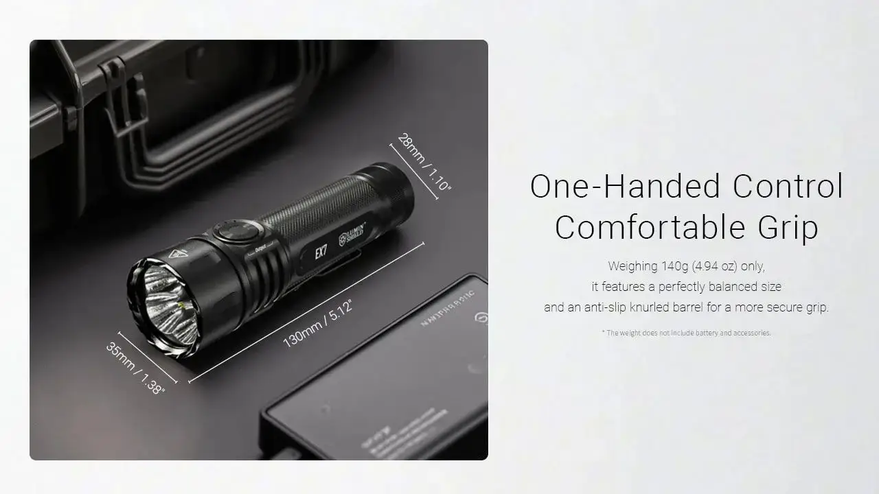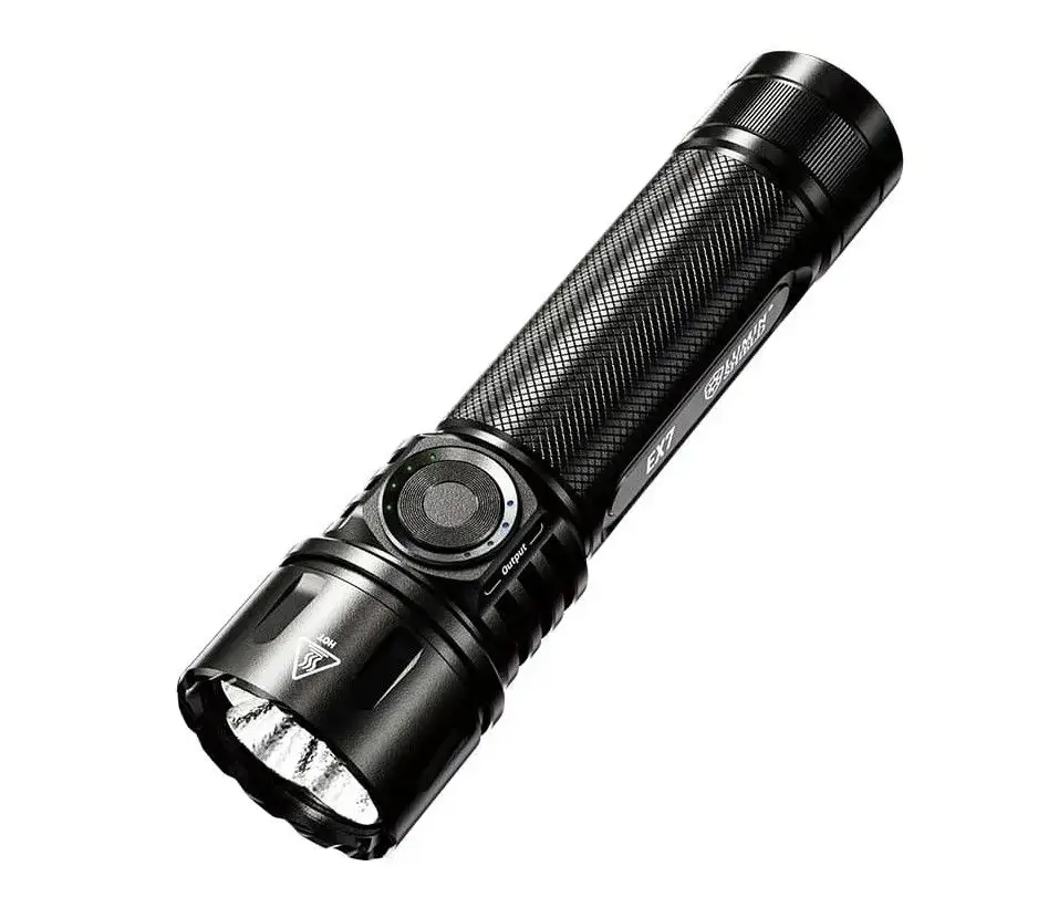 פנס יד טקטי מתקדם מדגם EX7 מבית Nitecore, המשלב עוצמה גבוהה של 6000 לומן עם יכולת תאורה כפולה – הצפה רחבה או אלומה ממוקדת לטווח של עד 500 מטר.
