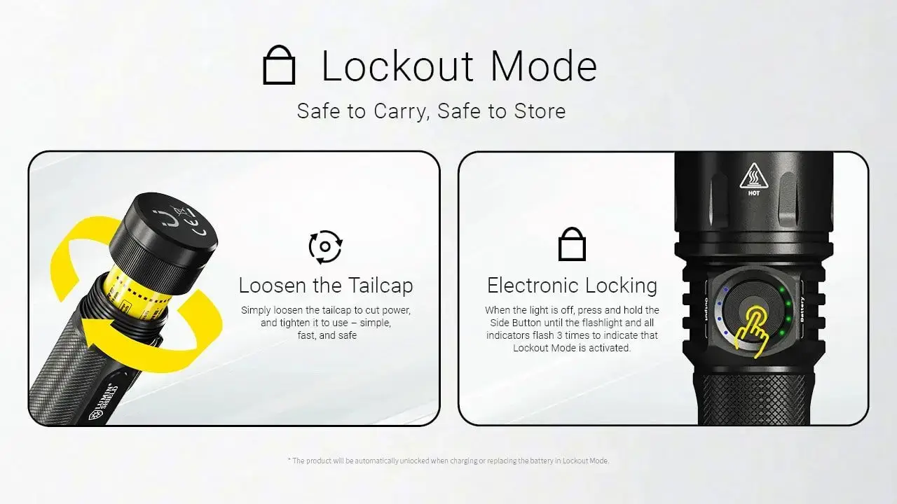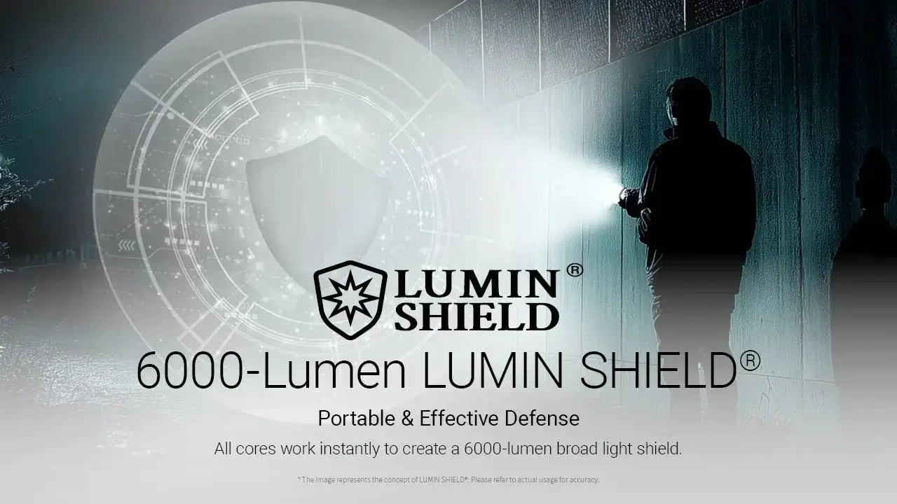 כולל מצבי תאורה מתקדמים: מצב LUMIN SHIELD לתאורת הצפה רחבה, מצב SEARCH לאלומה ממוקדת למרחק, מצב STROBE לסנוור, וכן מצב משולב לתאורה רחבה וממוקדת יחד.